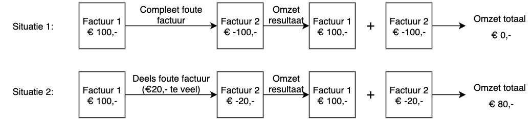 Tijdens het crediteren wordt er een tegenboeking gemaakt voor eerder fout geregisterde omzet.