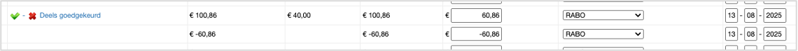 2. Zoek de afgekeurde factuur op en klik op het groene vinkje en rode kruisje en de tekst ‘Deels goedgekeurd’. Controleer de naam van de cliënt en de reden van afkeuring.