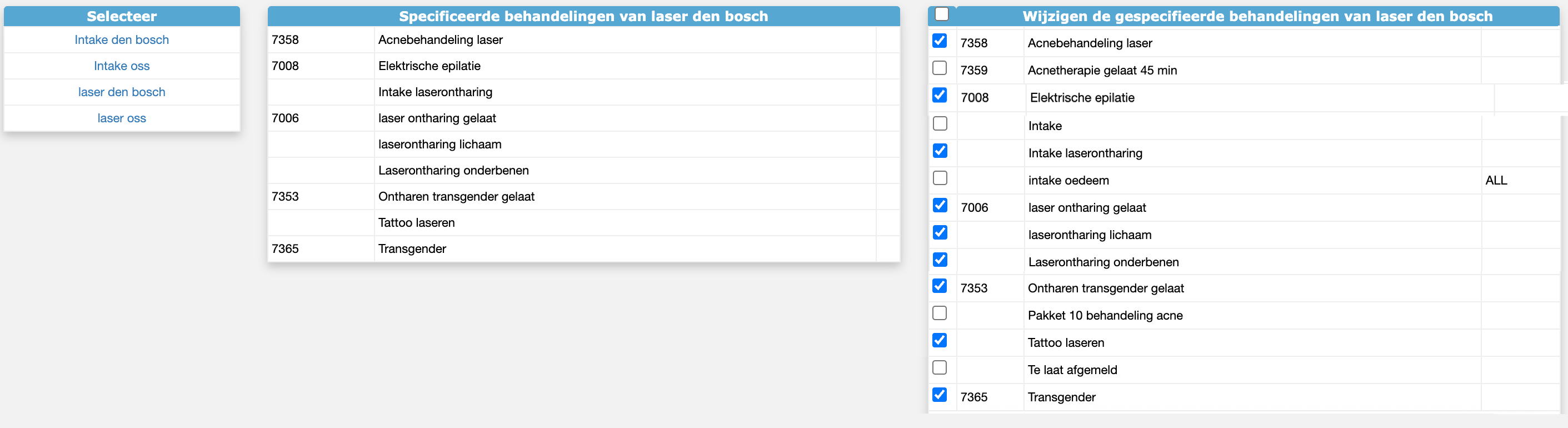 3. Vink in de lijst met behandelingen aan welke behandelingen dit apparaat kan uitvoeren en klik daarna op ‘opslaan’.